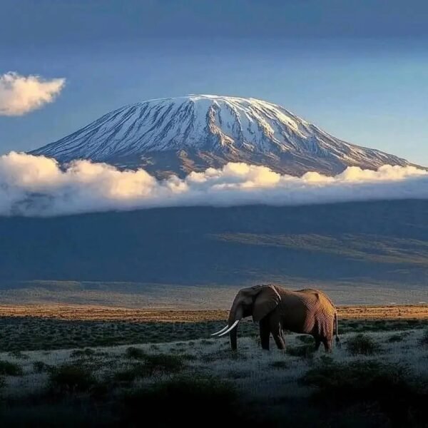 In Amboseli National Park, elephants roam beneath the snow-tipped majesty of Mount Kilimanjaro. The sight is almost surreal — massive herds silhouetted against Africa’s highest peak.